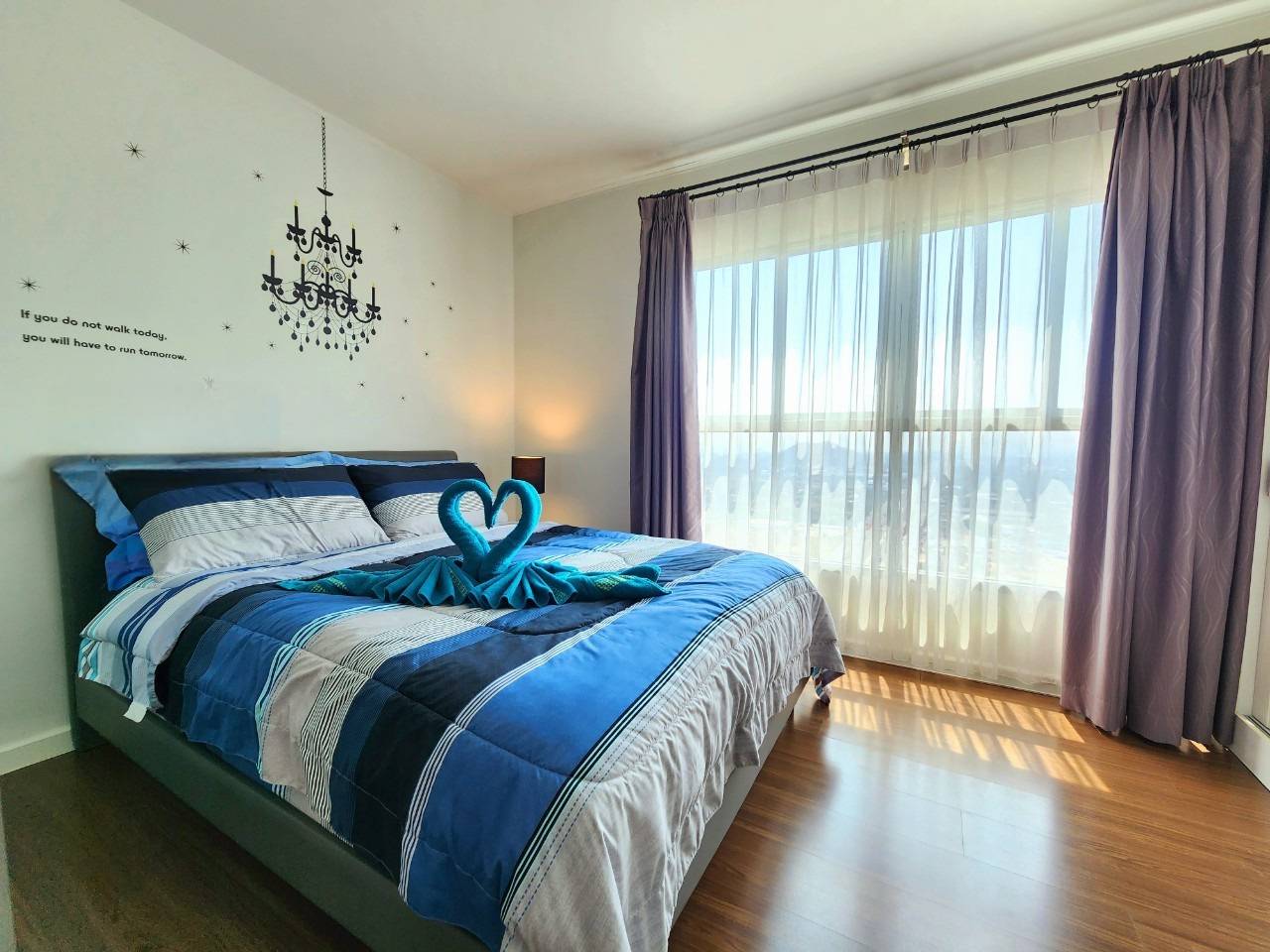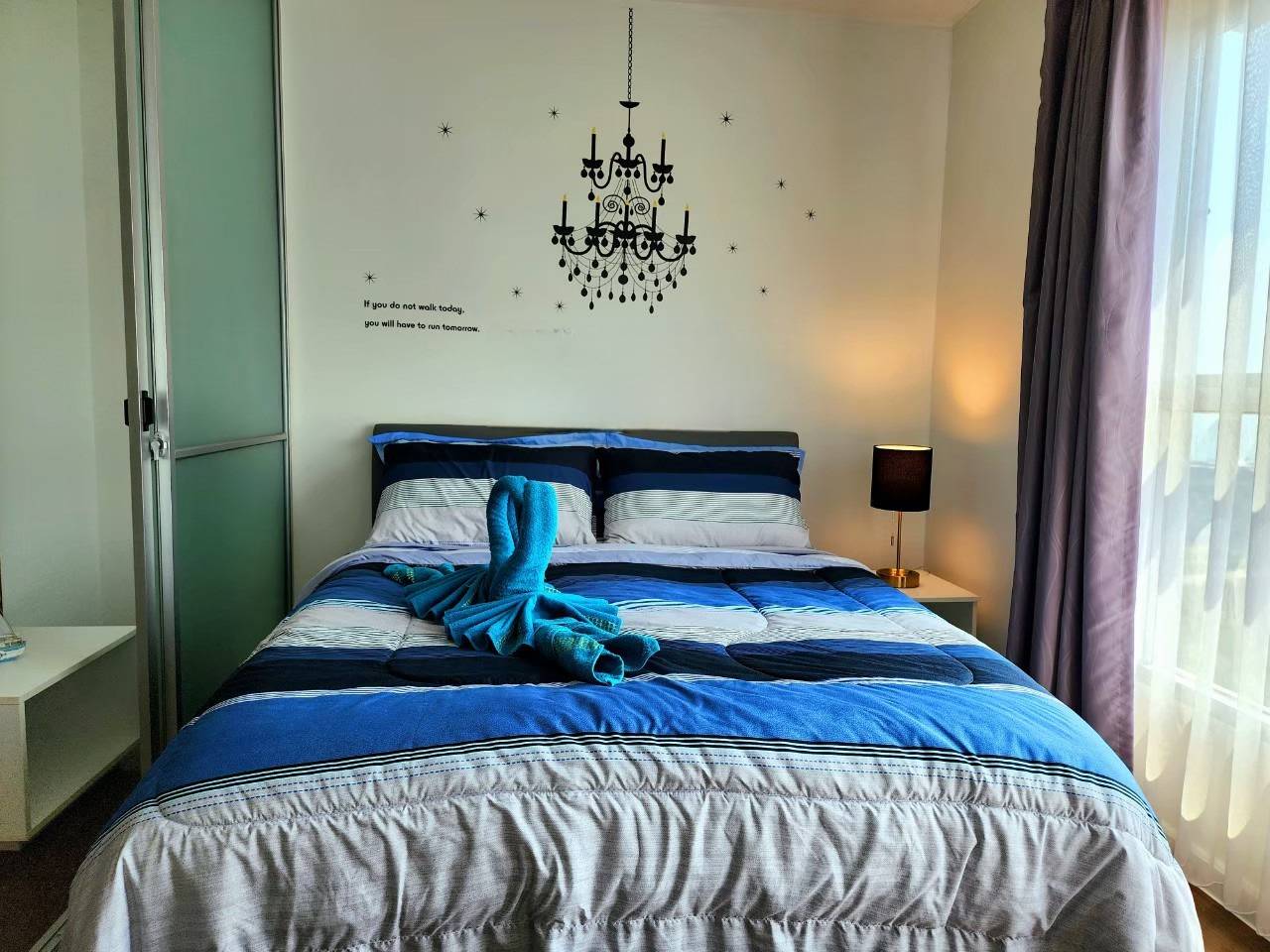 - Fully furnished – bed, sofa, wardrobe, dining table, curtains